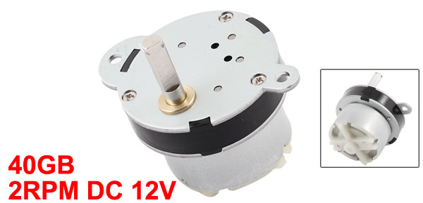 Product Name DC Geared Motor Model 40GB Rated Voltage DC 12V Output Speed 2RPM Output Shaft Diameter 5mm / 0.2" Gearbox Part Diameter 32mm / 1.26" Total Length(Approx.) 53mm / 2.1" Material Metal, Electronic Parts Weight 93g Package Content 1 x DC Geared Motor - Reviews
