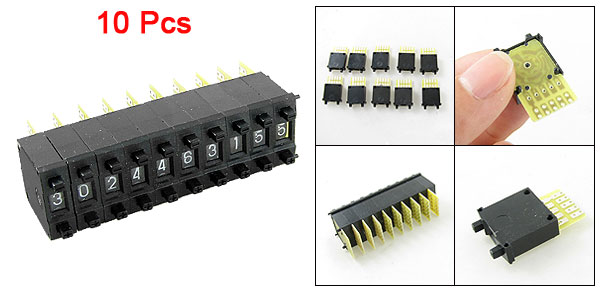 Product Name Pushwheel Switch Number of Unit 10 Pcs Digital 0,1,2,3,4,5,6,7,8,9 Code Method 8421 Each Size 2.9 x 1.6 x 0.6cm/ 1.14" x 0.63" x 0.24" (L*W*T) Total Size 6 x 1.6 x 2.9cm/ 2.36" x 0.63" x 1.14" (L*W*H) Color Black Material Plastic, Electronic Parts Weight 20g Package Content 1 x Pushwheel Switch - Reviews