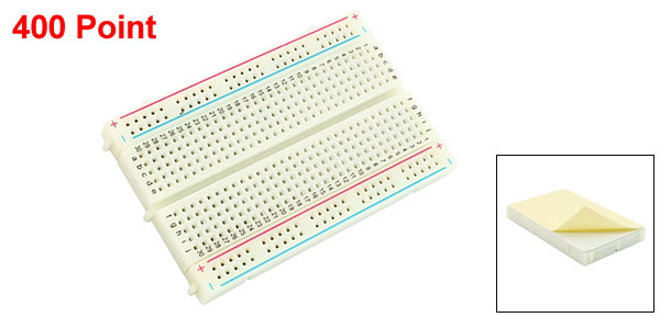 Product Name Breadboard Breadboard Type 400 Point Breadboard Size 82 x 53 x 8mm / 3.2" x 2.1" x 0.31" (L*W*T) Material Plastic, Metal Net Weight 43g Package Content 1 x Breadboard