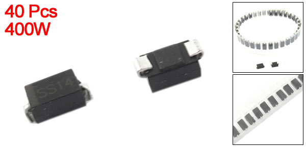 DetailsElectronic Components DO-214AC 400W Schottky Diode 1N5819 SS14 40pcs  Product Name Schottky Diode Model 1N5819 SS14 Package Type DO-214AC (SMA) Power 400W Size 5 x 2.5 x 2.2mm / 0.2" x 0.1" x 0.087" (L*W*T) Color Silver Tone, Black, Clear Weight 4g Package Content 40 x Schottky Diode