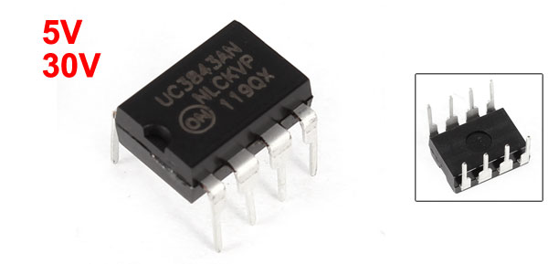 Product Name PWM Controller IC Type UC3843AN Pins 8 Power 1W Switching Frequency 500kHz Output Current 1000mA Output Voltage 5V Input Voltage 30V Power Supply Voltage Range 12-25V Temperature Range 0°C to 70°C Packaging DIP Controller Type PWM(Pulse Width Modulation) Chip Type PWM Controller Pitch 2.5mm/ 0.098" Dimension(Each one) 9 x 8 x 7mm/ 0.35" x 0.31" x0.28"(L*W*H) Material Electric Part Color Black, Silver Tone Net Weight 1g Package Content 1 x PWM Controller IC - Reviews