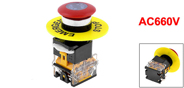 Product Name Emergency Stop Push Button Switch Model No. LA128D Contact Type 1 NO + 1 NC DPST Action Type Non Locking Type Ui AC 660V Panel Cutout Diameter 2.2cm / 0.87" Fit Panel Thickness(Adjustable) Max 0.5cm / 0.2" Button Diameter 3.7cm / 1.46" Total Size 3.6 x 2.9 x 8cm / 1.4'' x 1.1'' x 3.15'' (L*W*H) Main Material Plastic, Metal Main Color Push Button: Red Body: Black, Orange, Yellow Weight 64g Package Content 1 x Emergency Stop Push Button Switch - Reviews