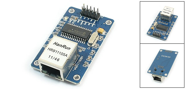 Product Name Ethernet module Model ENC28J60 Power Supply DC 3.3V Crystal Oscillator (XTL) 25 MHz Pin Quantity 10 Pin Total Size 59 x 34 x 18mm/ 2.3" x 1.3" x 0.71" (L*W*H) Mounting Hole Size 2.5mm/ 0.098" Material Electric Part, Plastic Net Weight 16g Package Content 1 x Ethernet module - Reviews