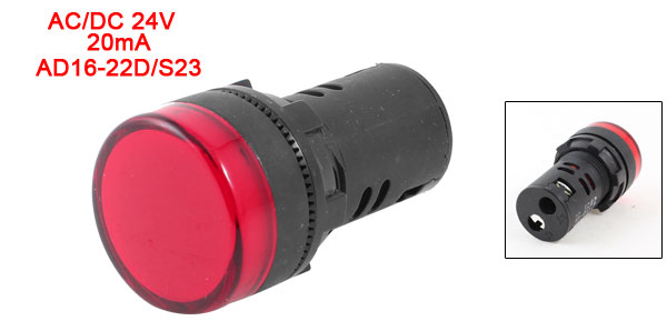 Product Name LED Indicator Light Model No. AD16-22D/S23 Voltage AC/DC 24V Current 20mA (Max.) Material Plastic, Electric Components Light Color Red Main Color Black, Red Size 5 x 2.8cm/ 2" x 1.1" (L*D) Net Weight 21g Pakcage Content 1 x LED Indicator Light - Reviews