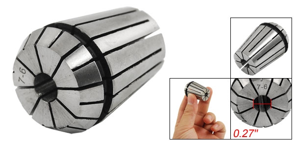 Product Name Spring Collet Model No. ER25-7 Clamping Range 7-6mm/0.27"-0.23" Clamping Diameter 7mm/0.27" Overall Size 25 x 35mm/0.98" x 1.37"(Dia*Length) Material Stainless Steel Color Silver Tone Net Weight 71g Package Content 1 x Spring Collet Chuck - Reviews