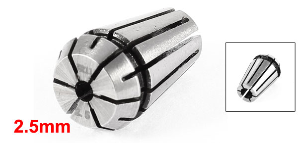 Product Name Spring Collet Chuck Model No. ER11-2.5 Clamping Diameter 2.5mm/0.1" Overall Size 11 x 18mm/0.43" x 0.71"(Dia*Length) Material Stainless Steel Color Silver Gray Net Weight 9g Package Content 1 x Spring Collet Chuck - Reviews