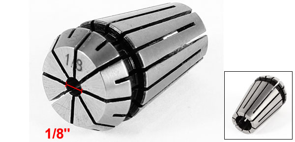 Product Name Spring Collet Chuck Model No. ER16-1/8" Clamping Diameter 1/8" (3mm) Overall Size 16 x 28mm/0.63" x 1.1"(Dia*Length) Material Stainless Steel Color Silver Gray Net Weight 23g Package Content 1 x Spring Collet Chuck - Reviews