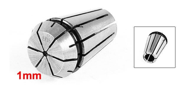 DetailsER16 1mm Dia Clamp Spring Collet CNC Milling Lathe Workholding Tool  Product Name Spring Collet Chuck Model No. ER16-1 Clamping Diameter 1mm/0.04" Overall Size 16 x 28mm/0.63" x 1.1"(Dia*Length) Material Stainless Steel Color Silver Gray Net Weight 26g Package Content 1 x Spring Collet Chuck