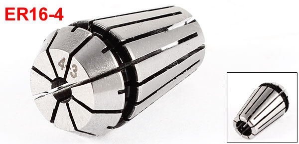 Product Name Spring Collet Chuck Model No. ER16-4 Clamping Range 4-3mm/0.16"-0.12" Clamping Diameter 4mm/0.16" Overall Size 16 x 27mm/0.63" x 1.1"(Dia*Length) Material Stainless Steel Color Silver Gray Net Weight 23g Package Content 1 x Spring Collet Chuck - Reviews