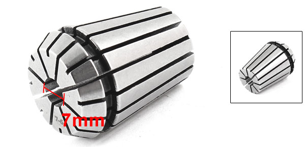 Product Name Spring Collet Model No. ER25 Clamping Range 7-6mm/ 0.28"-0.24" Clamping Diameter 7mm/ 0.28" Overall Size 26 x 34mm/1.0" x 1.3"(Max.D*Length) Material Stainless Steel Color Silver Tone Net Weight 71g Package Content 1 x Spring Collet - Reviews