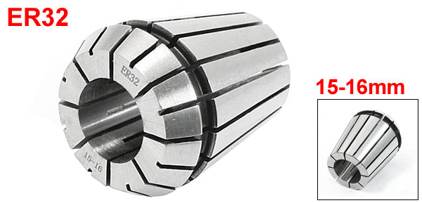 Product Name Spring Collet Model No. ER32 Clamping Range 15-16mm/ 0.59"-0.63" Clamping Diameter 16mm/ 0.63" Overall Size 33 x 40mm/1.3" x 1.6"(Dia*Length) Material Stainless Steel Color Silver Tone Weight 116g Package Content 1 x Spring Collet - Reviews