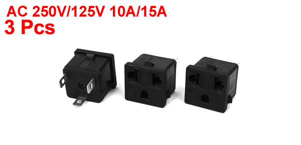 EU US AC 250V/125V 10A/15A 3 Pins Panel Mounted Power Socket 3 Pcs
