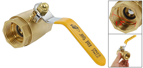F/F Female to Female 3cm 1.2" Threaded Yellow Lever Ball Valve