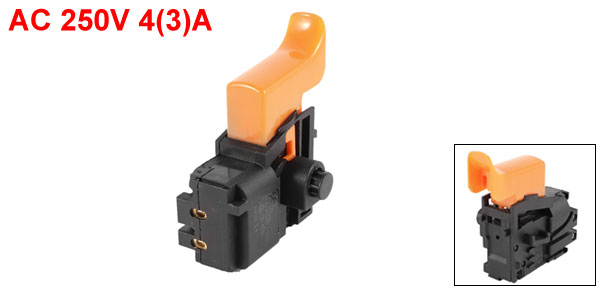Product Name Electric Tool Switch Model No. FA2-4/2BE-1 Contact Type Single Pole Double Throw(SPDT) Action Type Normally Open Lock Type Lock on Technical Parameter AC 250V 4(3)A Size 46 x 23 x 63mm/ 2.1" x 0.9" x 2.36" (L*W*H) Material Plastic Color Black, Orange Net Weight 37g Package 1 x Electric Tool Switch - Reviews
