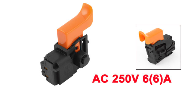 Product Name Electric Tool Switch Model No. FA2-6/2BEK2 Contact Type Single Pole Double Throw(SPDT) Action Type Normally Open Lock Type Lock on Technical Parameter AC 250V 6(6)A Size 46 x 23 x 63mm/ 2.1" x 0.9" x 2.36" (L*W*H) Material Plastic Color Black, Orange Net Weight 33g Package 1 x Electric Tool Switch - Reviews