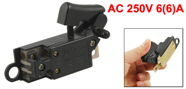 Product Name Trigger Switch Action Type DPST, Normally Open Type Lock on Model. FA2-6/2B3 Technical Parameter AC 250V 6(6)A Size 8 x 2 x 5cm/ 3.1'' x 0.78'' x 2'' (L*W*H) Material Plastic, Metal Color Black Weight 41g Package 1 x Trigger Switch - Reviews