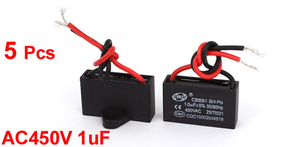 Fan CBB61 AC450V 1uF 2 Wires Polypropylene Film Motor Capacitor 5 Pcs
