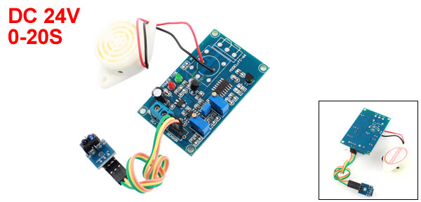Product Name Delay Alarm Module Working Voltage DC24V Buzzer Type Piezo Buzzer (Self-drive Type) Sensor Type TCRT5000 Delay Time 0-20S Reflection Distance 0-3cm Fixing Hole Dia 3mm/0.12" Fixing Hole Center Distance 59 x 33mm/2.4" x 1.3"(L*W) Total Size 6.4 x 3.9 x 1.2cm/2.5" x 1.6" x 0.47"(L*W*H) Materials PCB Main Color Green Net Weight 25g Package Content 1 x Delay Alarm Module