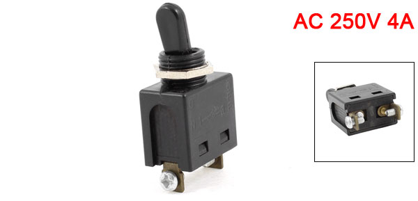 Product Name Toggle Switch Model No. FD2-4/1W Action Type Latching Contact Type SPST NO Number of Position 2(ON/OFF) Voltage/Current AC 250V 4A Thread Diameter 12mm/ 0.5" Size 23 X 14 X 46mm/ 0.9" x 0.55" x 1.8" (L*W*H) Material Plastic, Matel Color Black Net Weight 10g Package 1 x Toggle Switch - Reviews