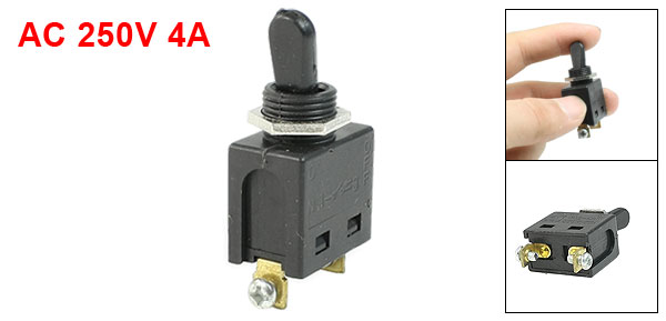 Product Name Toggle Switch Model No. FD2-4/1W Action Type Latching Contact Type SPST NO Number of Position 2(ON/OFF) Voltage/Current AC 250V 4A Thread Diameter 12mm/ 0.5" Size 23 X 14 X 46mm/ 0.9" x 0.55" x 1.8" (L*W*H) Material Plastic, Matel Color Black Net Weight 9g Package 1 x Toggle Switch - Reviews