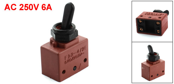 Product Name Toggle Switch Model No. FD2-4/2F Contact Type DPST Number of Position 2(ON/OFF) Voltage/Current AC 250V 6(4)A Size 30 X 18 X 47mm/ 1.2" x 0.7" x 1.9" (L*W*H) Material Plastic, Matel Color Black, Red Net Weight 18g Package 1 x Toggle Switch - Reviews