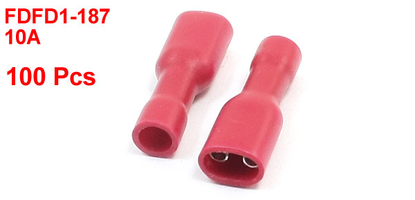 FDFD1-187 Red Female Spade Crimp Fully Insulated Terminals 22-16AWG 100 Pcs