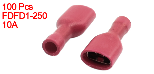 FDFD1-250 Red Female Spade Crimp Plastic Insulated Terminals 22-16AWG 100 Pcs
