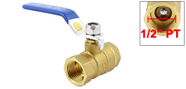 Female to Female 1/2" PT Threaded Blue Lever Handle Brass Ball Valve