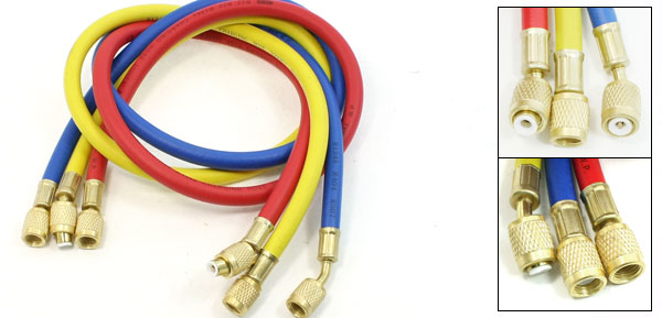 Product Name Refrigeration Charging Hoses Model No. 336-RYB-134A(Set) Working Pressure 600PSI Burst Pressure 30 00PSI Female Diameter 11mm Femal Diameter 1/4" NPT Total Size 94x 1.1cm/ 37" x 0.43"(L*Dia.) Color Red, Blue, Yellow Material Plastic, Brass Weight 423g Package 3 x Refrigeration Charging Hoses - Reviews