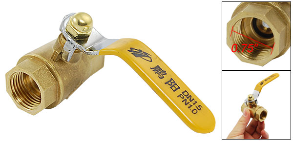 DetailsFemale to Female 19mm Thread Full Port Tube Ball Valve  Product Name Ball Valve Material Brass, Metal Color Gold Tone, Yellow Inner Valve Hole Dia 12mm/ 0.47" Thread Dia 19mm/ 0.75" Level Handle Size 92 x 15mm/ 3.6" x 0.59"(L*W) Overall Size 48 x 28 x 55mm/ 1.88" x 1.1" x 2.1" (L*W*H) Net Weight 130g Package Contents 1 x Ball Valve