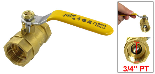 Female to Female 3/4" PT Threaded Yellow Lever Handle Brass Ball Valve