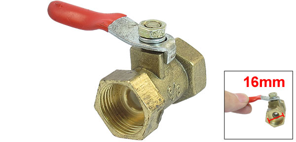 Product Name Lever Handle Ball Valve Type Female Thread Handle Size 25 x 11mm/1'' x 0.4'' (L*W) Body Size 32 x 31mm/1.3'' x 1.2'' (L*W) Female Thread Diameter 16mm Female Thread Size 3/8" PT Material Brass Color Gold Tone, Red Net Weight 37g Package Content 1 x Lever Handle Ball Valve - Reviews