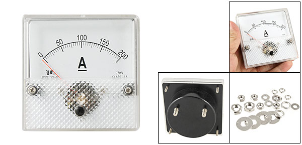 DC Current Panel Meter Model No. YS-80 Scale Range DC 0~200A Accuracy Class 2.5 Back Screw Diameter 5mm/ 0.2" & 3mm/ 0.12" Back Round Base Dia. 64mm/ 2.5" Panel Size 8 x 8 x 1.3cm/ 3.1" x 3.1" x 0.5" (L*W*T) Overall Depth 4.8cm/ 1.9" Color White & Black Main Material Plastic & Metal Net Weight 105g Package 1 x DC Current Panel Meter - Reviews