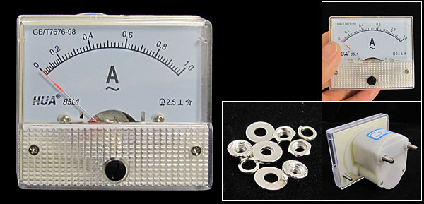 Product Name Analog Ammeter Model 85L1 Measuring Current Range AC 0-1A Accuracy Class 2.5 Meter Face Size(Approx) 6.3 x 5.5 x 1cm / 2.5" x 2.2" x 0.39"(L*W*T) Thread Size 0.37 x 0.8cm / 0.14" x 0.31"(D*L) 0.27 x 0.8cm / 0.1" x 0.31"(D*L) Overall Depth 4.8cm / 1.9" Color White Net Weight 95g Package Content 1 x Analog Ammeter Several Installing Parts - Reviews