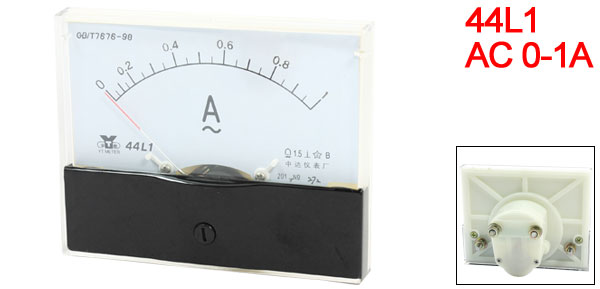 Product Name Analog Ammeter Type 44L1 Measuring Current Range AC 0-1A Accuracy 1.5 Operating Temperature -20 ~ 40 °C Insulation Force AC 2KV, 50Hz Panel Size(Approx) 100 x 80 x 12mm / 3.9" x 3.1" x 0.47"(L*W*T) Thread Size Long One: 4 x 11mm / 0.16" x 0.43"(D*L)