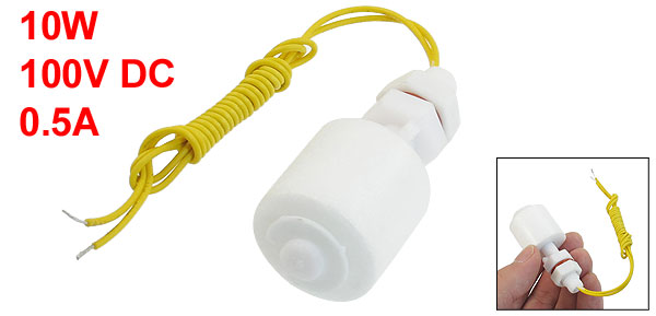 Product Name Float Switch Max Contact Rating 10W Max Switching Voltage 100V DC Max Switching Current 0.5A Max Breakdown Voltage 220V DC Max Carry Current 1.0A Max Contact Resistance 100mΩ Temperature Rating -10 ~ +60 °C / +85 °C Float Ball Material PP Float Body Material PP Float Ball Size(Approx) 22 x 24mm / 0.86" x 0.94"(L*D) Thread Dia(Approx) 9mm / 0.35" Hex Nut Diameter 14mm / 0.55" Bottom Clip Dia(Approx) 15mm / 0.6" Body Total Length 58mm / 2.3" Cable Length 36cm / 14" Color White, Yellow Net Weight 12g Package Content 1 x Float Switch - Reviews