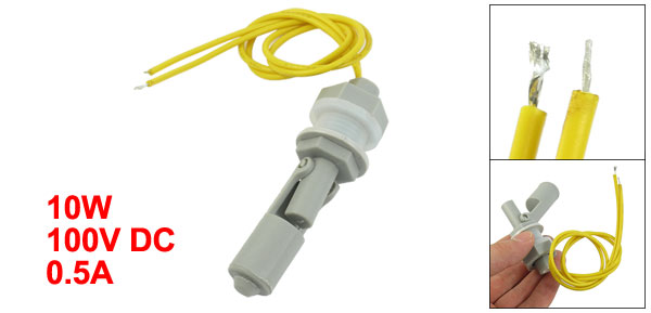 Product Name Float Switch Max Contact Rating 10W Max Switching Voltage 100V DC Max Switching Current 0.5A Max Breakdown Voltage 220V DC Max Carry Current 1.0A Max Contact Resistance 100mΩ Temperature Rating -10 ~ +60 °C / +85 °C Float Ball Material PP Float Body Material PP Float Ball Size(Approx) 28 x 17mm / 1.1" x 0.7"(L*D) Hex Nut Diameter 27mm / 1.1" Body Total Length 90mm / 3.5" Cable Length 35cm / 13.8" Color Gray, Yellow Net Weight 24g Package Content 1 x Float Switch - Reviews