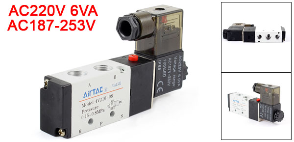 Five Way 2 Position Electric Solenoid Valve 4V210-08 AC220V 6VA