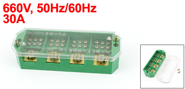 Product Name Power Distribution Block Model FJ6/JHD-1/C Insulation voltage 660V, 50Hz/60Hz Calibrated current 30A(40A) Operating temperature -40C TO 120C continuously Power frequency withstand voltage 3000V/minute Insulation resistance among terminals >40M ohm Weight 480g Package Content 1 x Power Distribution Block - Reviews
