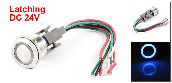 Item Name Push Button Switch Action Type Latching LED Type Ring-Illuminated LED Head Shape Flat Head Contact DPST(1NO 1NC ) Switch Rating 250VAC 5A Lamp Voltage DC 24V LED Color Blue Wire Number 6 Thread Diameter 22mm/0.87" Total Size(Wire No Include) 51 x 25mm/2" x 1" (L*Max.W) Material Metal, Plastic, Electric Parts Housing Color Silver Tone, Gray Weight 36g Package Content 1 x Push Button Switch - Reviews