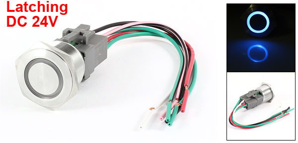 Item Name Push Button Switch Action Type Latching LED Type Ring-Illuminated LED Head Shape Flat Head Contact DPST(1NO 1NC ) Switch Rating 250VAC 5A Lamp Voltage DC 24V LED Color Green Wire Number 6 Thread Diameter 25mm/1" Total Size(Wire No Include) 51 x 30mm/2" x 1.2" (L*Max.W) Material Metal, Plastic, Electric Parts Housing Color Silver Tone, Gray Weight 54g Package Content 1 x Push Button Switch - Reviews