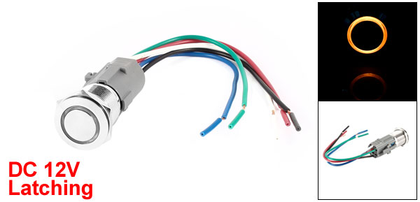 Item Name Push Button Switch Action Type Latching LED Type Ring-Illuminated LED Head Shape Flat Head Contact SPDT(1NO 1NC ) Switch Rating 250VAC 5A Lamp Voltage DC 12V LED Color Orange Wire Number 5 Thread Diameter 19mm/0.75" Total Size(Wire No Include) 50 x 22mm/2" x 0.87" (L*Max.W) Material Metal, Plastic, Electric Parts Housing Color Silver Tone, Gray Weight 29g Package Content 1 x Push Button Switch - Reviews
