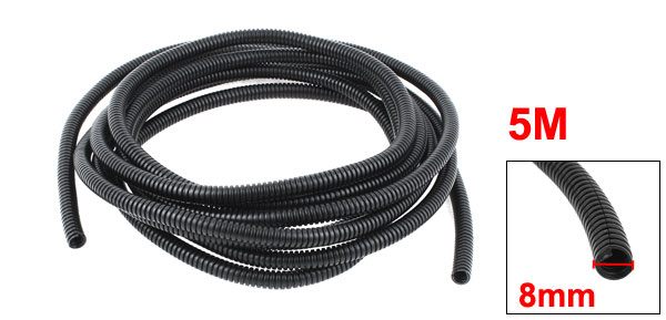 Flexible 8mm Dia Black PVC Corrugated Tubing Gas Conduit Tube Hose Pipe 5M