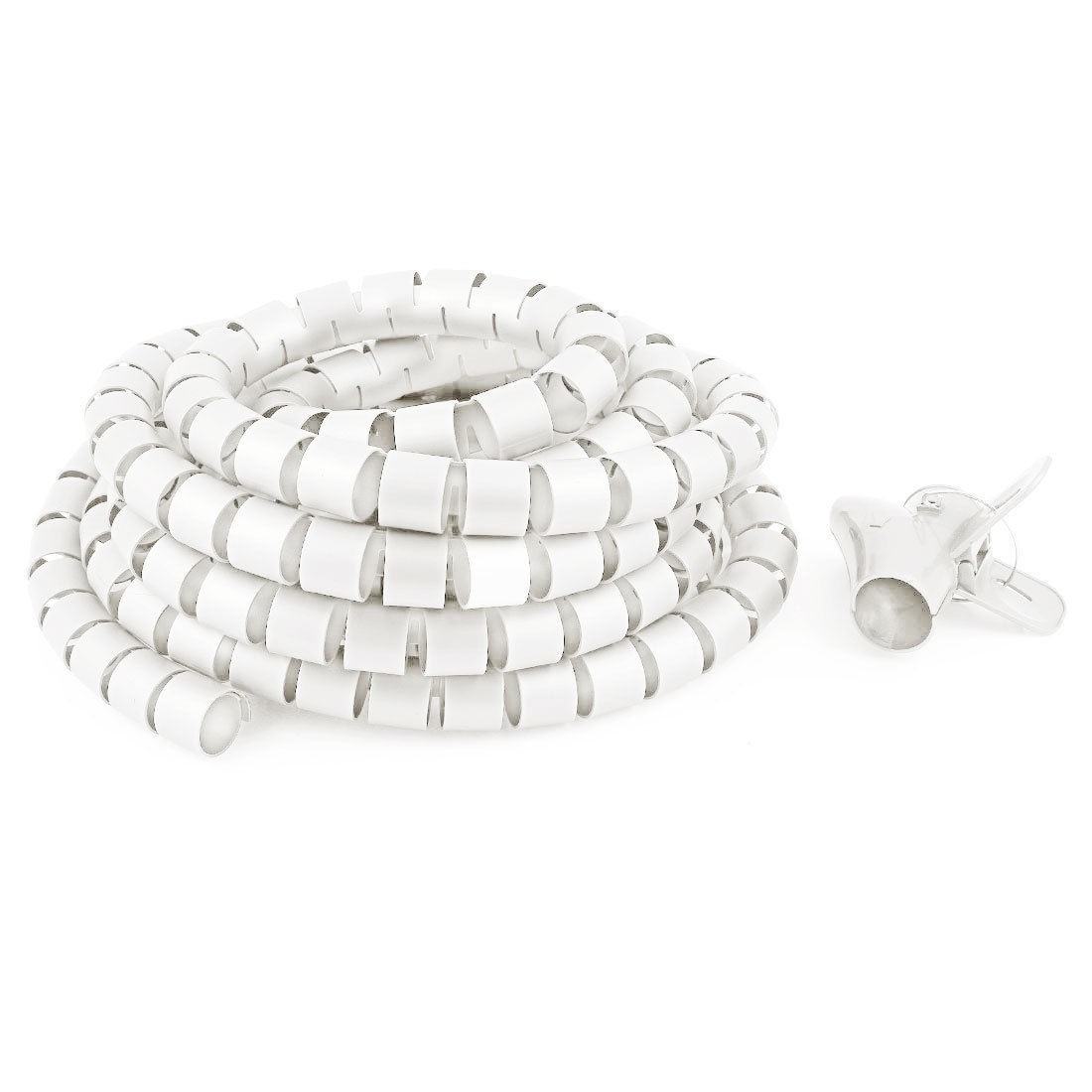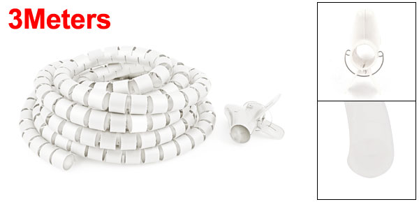 Flexible Spiral Tube Cable Wire Wrap Cord Management w Clip 3Meter 10Ft White