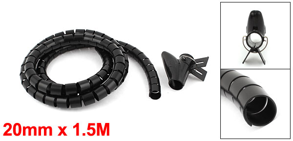 Flexible Spiral Tube Cable Wire Wrap PC Cord Management w Clip 1.5M 5Ft Black