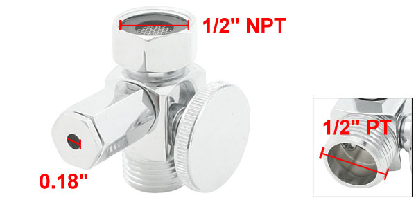 Product Name Water Heater Control Valve Female Thread Dia. 19mm/0.75'' Female Thread Size 1/2" NPT Male Thread Dia. 21mm/0.83'' Male Thread Size 1/2" PT Hex Thread Dia 4.5mm/0.18" Overall Size 50 x 50 x 35mm/2'' x 2'' x 1.4'' (L*W*H)