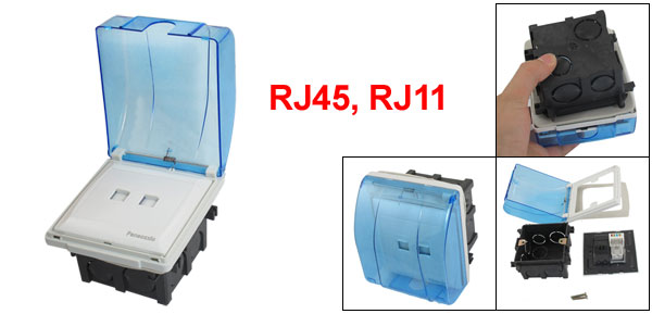 Product Name Wall Outlet Plate Material Plastic, Metal Outlet Type RJ11 Telephone, RJ45 Computer Jack Screw Size 24 x 3.8mm/ 0.94" x 0.15"(L*Dia.) Panel Size 86 x 86mm/ 3.39" x 3.39"(L*W) Base Size 9.2 x 9.2 x 4.8cm/ 3.62" x 3.62" x 1.89"(L*W*H) Cover Size 11.2 x 9.6 x 4.4cm/ 4.41" x 3.78" x 1.73"(L*W*H) Installing Hole Size 7 x 4.3mm/ 0.28" x 0.17"(L*W) Installing Hole Distance 60mm/ 2.36"(Center to Center) Overall Size 11.2 x 9.6 x 9.4cm/ 4.41" x 3.78" x 3.7"(L*W*H) Panel Color White Splash Proof Box Color Blue, Clear Base Color Black Weight 172g Package 1 x Wall Outlet Plate