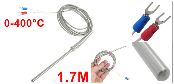 Product Name Thermocouple Transfer Type K Temperature Range 0-400°C Thread Diameter 7.8mm / 3.1" Probe Diameter 5mm/ 0.1" Fork Terminal Spacing 4mm / 0.16" Probe Length 100mm/ 3.9" External Shielding Metal Shield Total Length 1.7m / 5.6Ft Color Silver Tone Weight 47g Package Content 1 x Thermocouple - Reviews