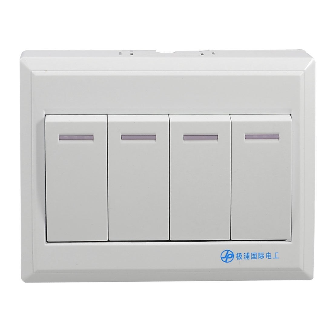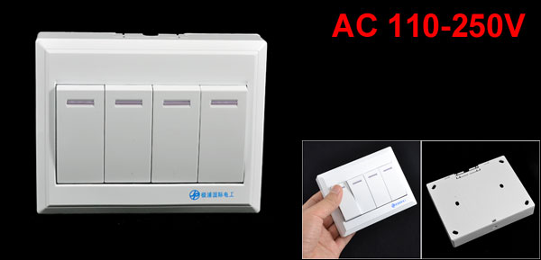 Product Name Light Switch Wall Plate Shape Square Button Number 4 Gang Material Plastic, Electronic Parts Color White Voltage AC 110-250V Current 10-16A Total Size 10.9 x 8.5 x 3.1cm/ 4.3" x 3.3" x 1.2" (L*W*H) Weight 123g Package Content 1 x Light Switch Wall Plate
