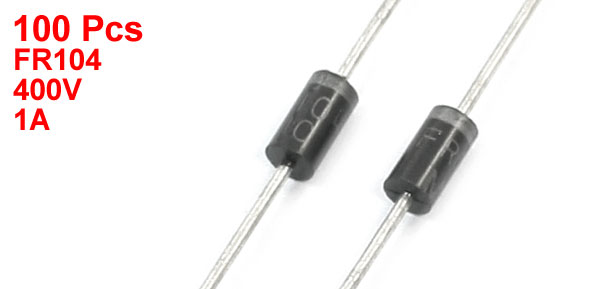 Product Name Super Fast Recovery Diodes Model FR104 Max Repetitive Peak Reverse Voltage 400V Average Forward Current 1A Lead Size(Each Side) 0.7 x 27mm/0.08" x 1"(D*L) Body Dimension 2.5 x 5mm/0.1" x 0.2"(D*L) Color As Picture Shown Weight 26g Package Content 100Pcs(±2%) x Super Fast Recovery Diodes - Reviews
